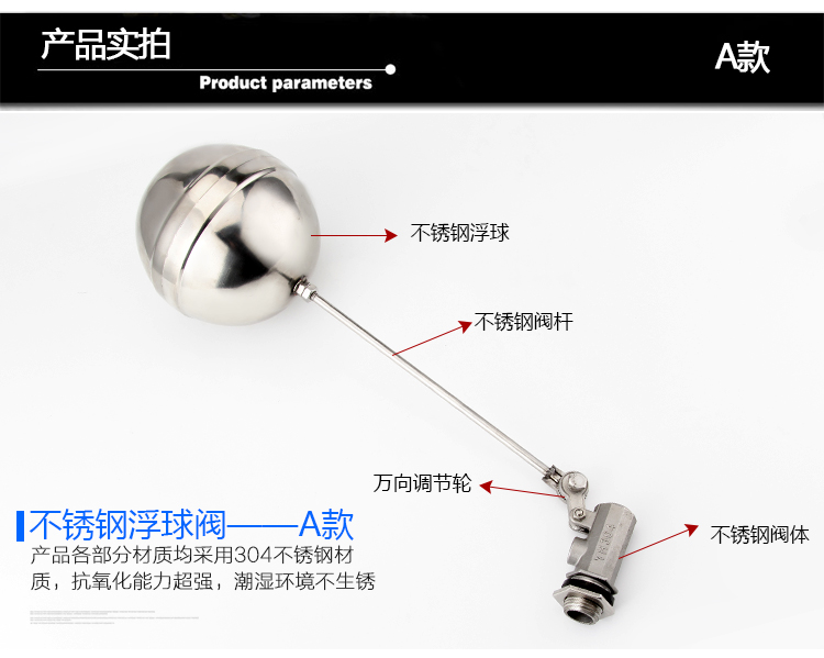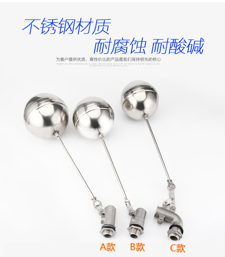 當水塔內(nèi)水面下降時,浮球下落,;利用水管內(nèi)水的壓力,將閥體里的密封硅膠面柱塞打開,閥體開啟供水;當水塔內(nèi)水位上升時,浮球上浮,連桿帶動柱塞。硅膠體密封進水孔,閥體停止供水。