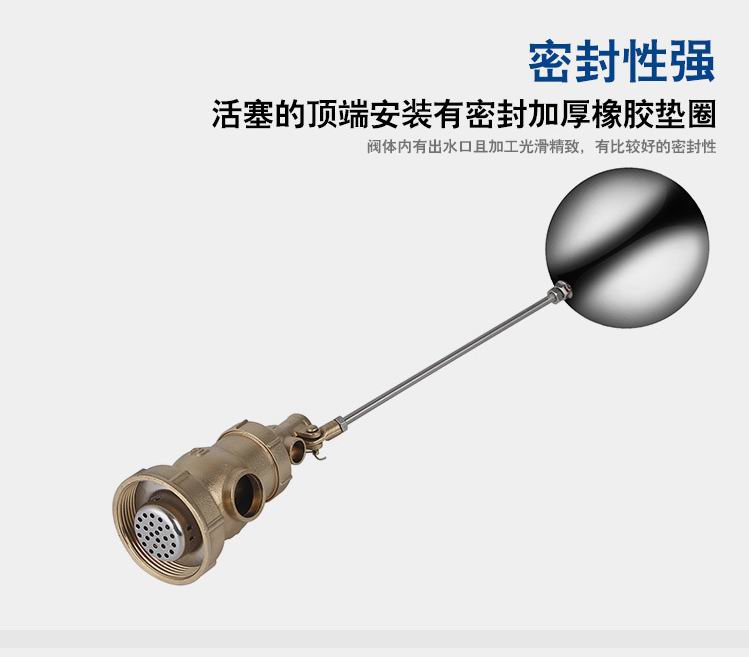 當水塔內(nèi)水面下降時,浮球下落,利用水管內(nèi)水的壓力,將閥體里的密封硅膠柱塞打開,閥體開啟供水,當水塔水位上升時,浮球上浮,連桿帶動柱塞,硅膠體密封進水孔,閥體停止供水.