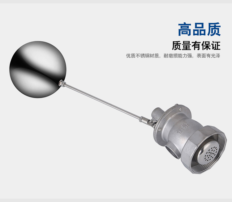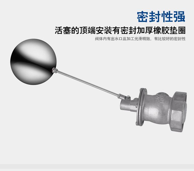當水塔內(nèi)水面下降時,浮球下落,利用水管內(nèi)水的壓力,將閥體里的密封硅膠柱塞打開,閥體開啟供水,當水塔水位上升時,浮球上浮,連桿帶動柱塞,硅膠體密封進水孔,閥體停止供水.