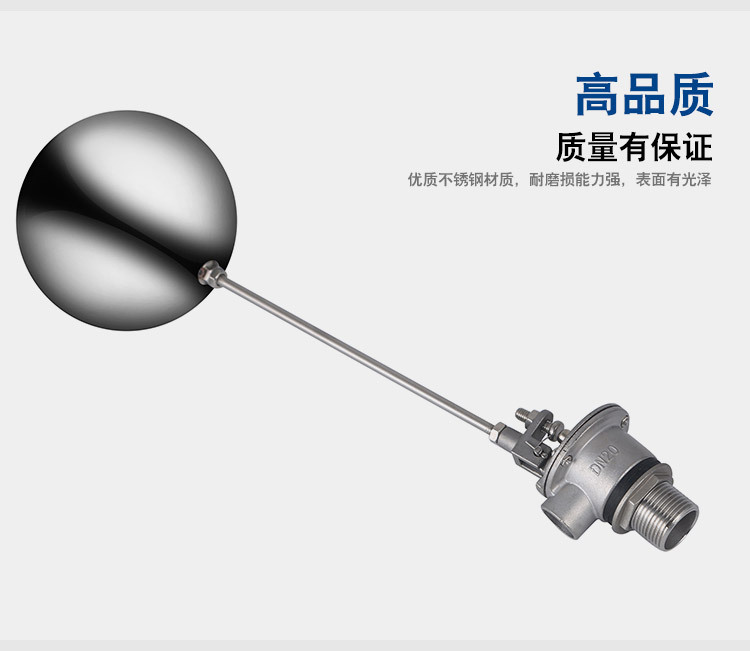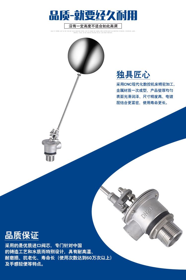 當水塔內(nèi)水面下降時,浮球下落,利用水管內(nèi)水的壓力,將閥體里的密封硅膠柱塞打開,閥體開啟供水,當水塔水位上升時,浮球上浮,連桿帶動柱塞,硅膠體密封進水孔,閥體停止供水.