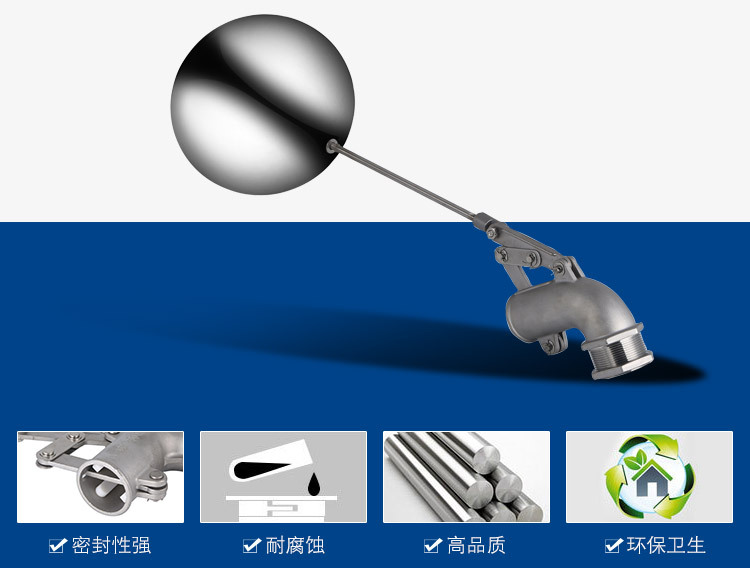 當(dāng)水塔內(nèi)水面下降時(shí),浮球下落,利用水管內(nèi)水的壓力,將閥體里的密封硅膠柱塞打開,閥體開啟供水,當(dāng)水塔水位上升時(shí),浮球上浮,連桿帶動(dòng)柱塞,硅膠體密封進(jìn)水孔,閥體停止供水.