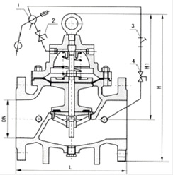 100D 定水位閥結(jié)構(gòu)圖 1、導(dǎo)閥 2、小球閥 3、過(guò)濾器 4、小球閥